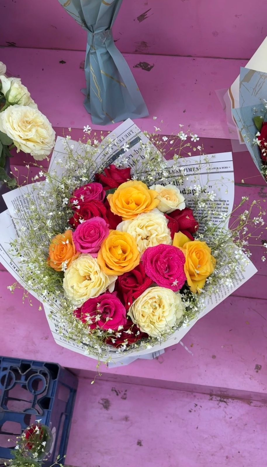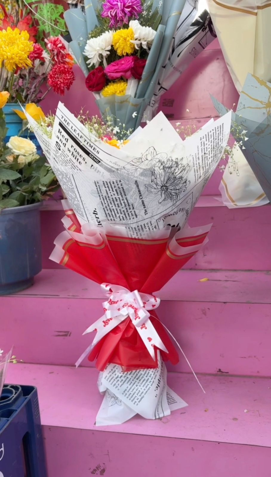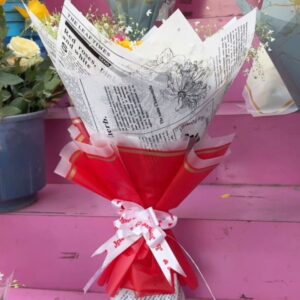 15 Mix Roses Bouquet With rounded jipsi and white and red Wrapping Paper
